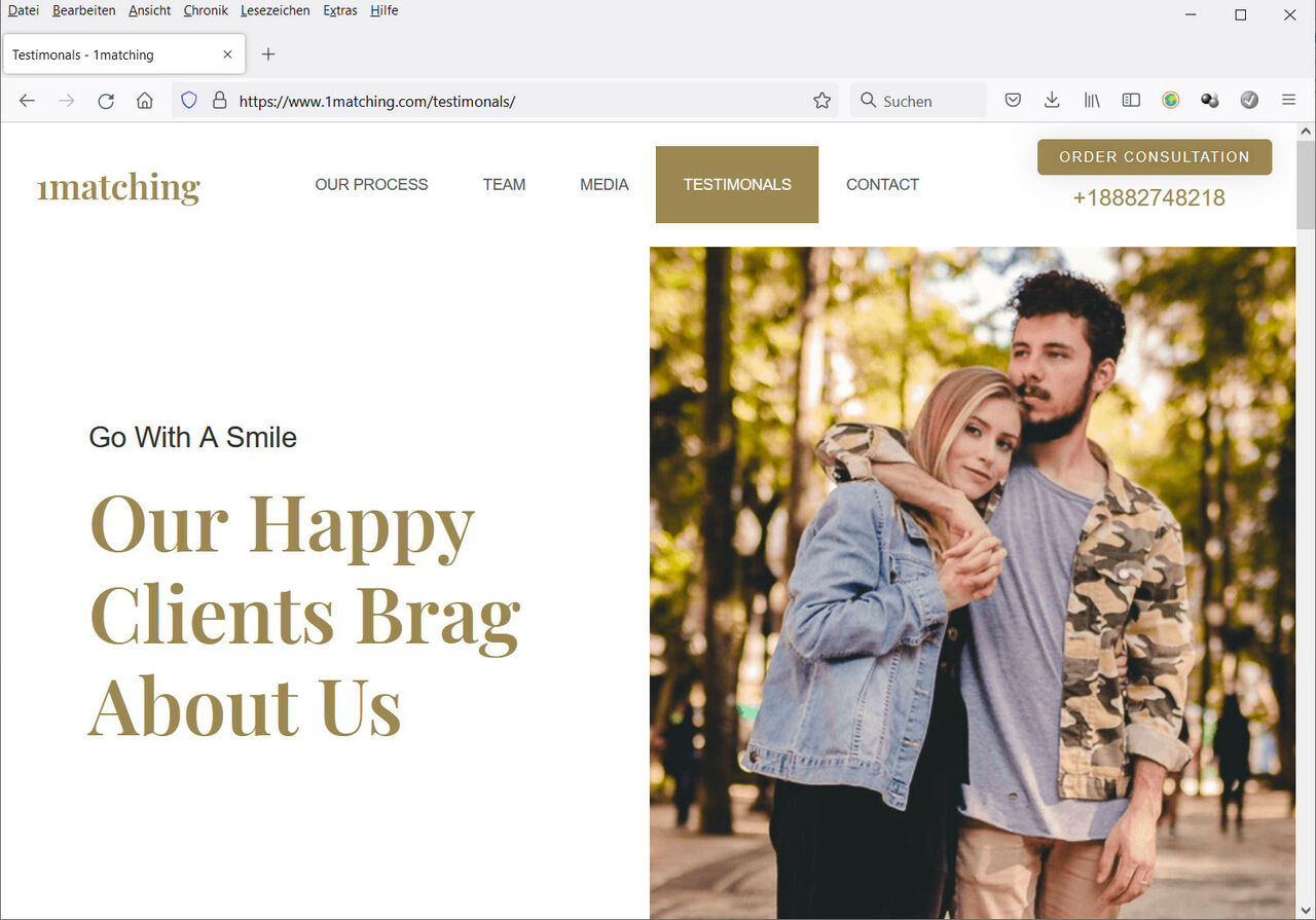 Страница отзывов на сайте 1matching.COM's была озаглавлена так 11 октября 2021 года: «Наши счастливые клиенты хвастаются нами». Это очень разоблачает их. Хвастовство - это конечно не серьезный отзыв. YВы все еще можете найти